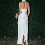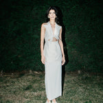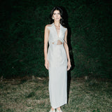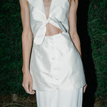 A structured vest with a knot detail on the bust and sharp lapels. Pair it nicely with the 'lula' skirt. It is highlighted by a row of buttons that a touch of elegance.