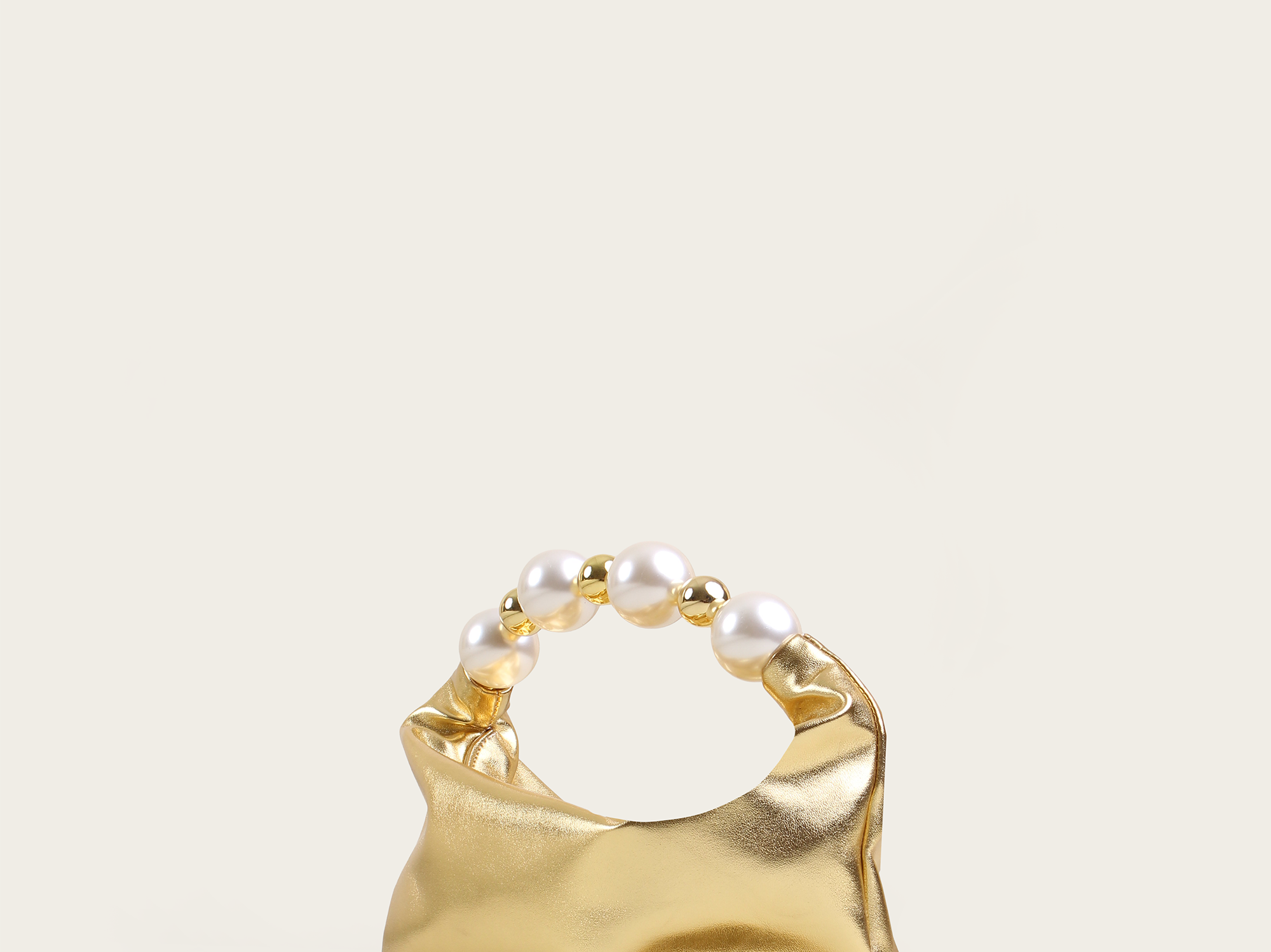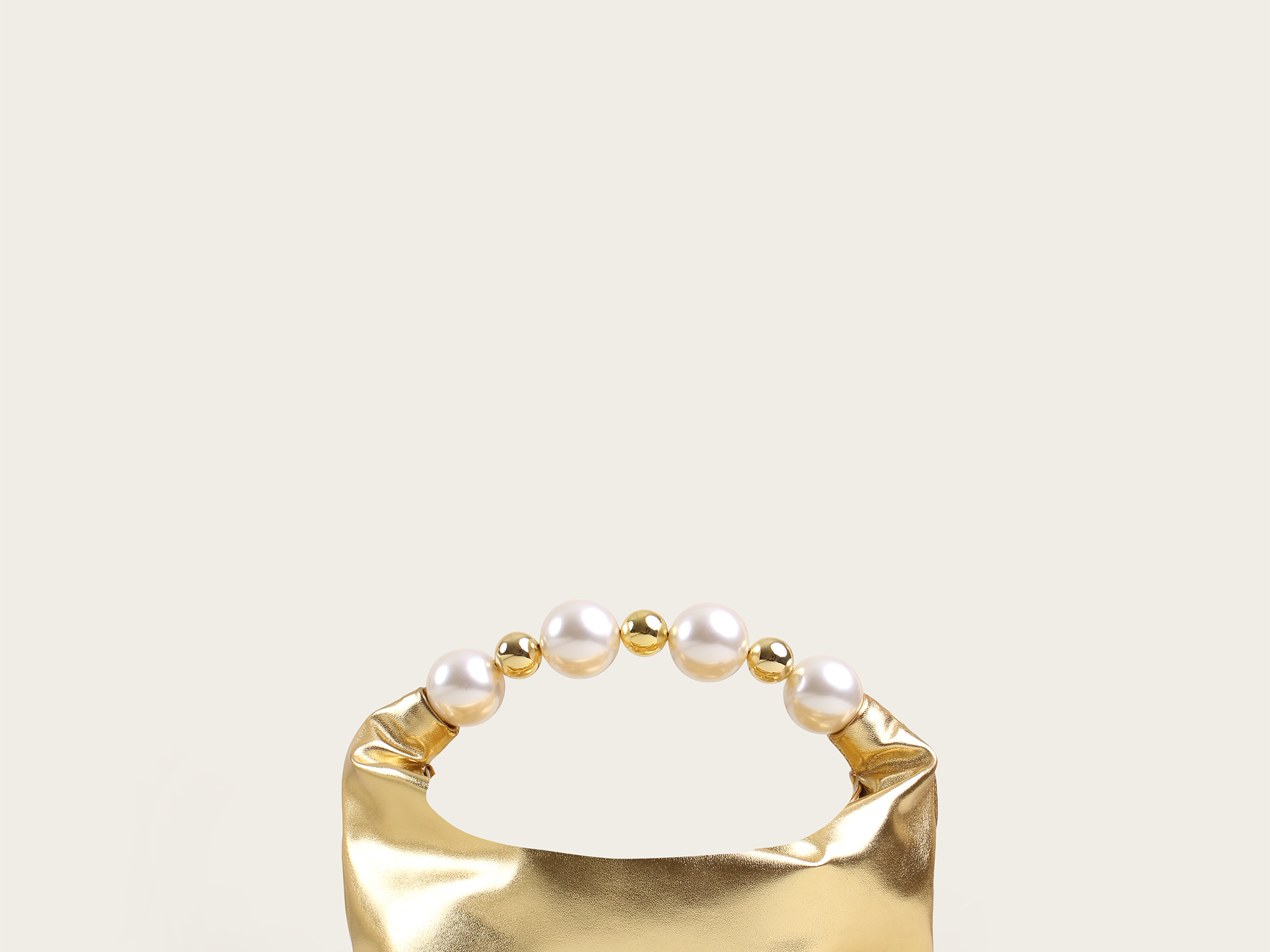 Composition: Leather-like material, acrylic beads, gold-plated brass.