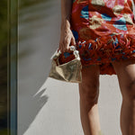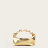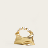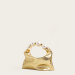 A signature Vanina piece introduced in many versions. The 'Echappe' is crafted from a soft leather in a sculptural, hollowed shape. It features a magnetic closure and comes with handle adorned with acrylic beads.