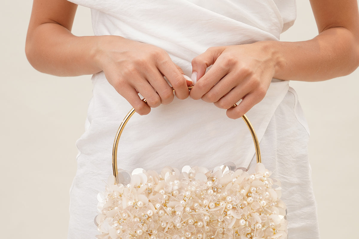 Handcrafted with clusters of shimmery, crystals, and sequins; the 'Eclat De Lune' bag is sealed with a magnetic closure and is everything you need for the ultimate statement look.