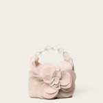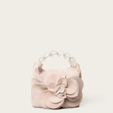 A unique handbag that adds dimension and novelty to your looks. It features handle adorned with textured foiled beads and an oversized handmade flower.