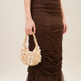 An embellished piece like no other. The 'Soleil Pluvieux' bag is entirely adorned with cascading sculptural beads, giving an alluring dimensional effect.