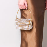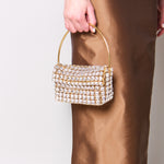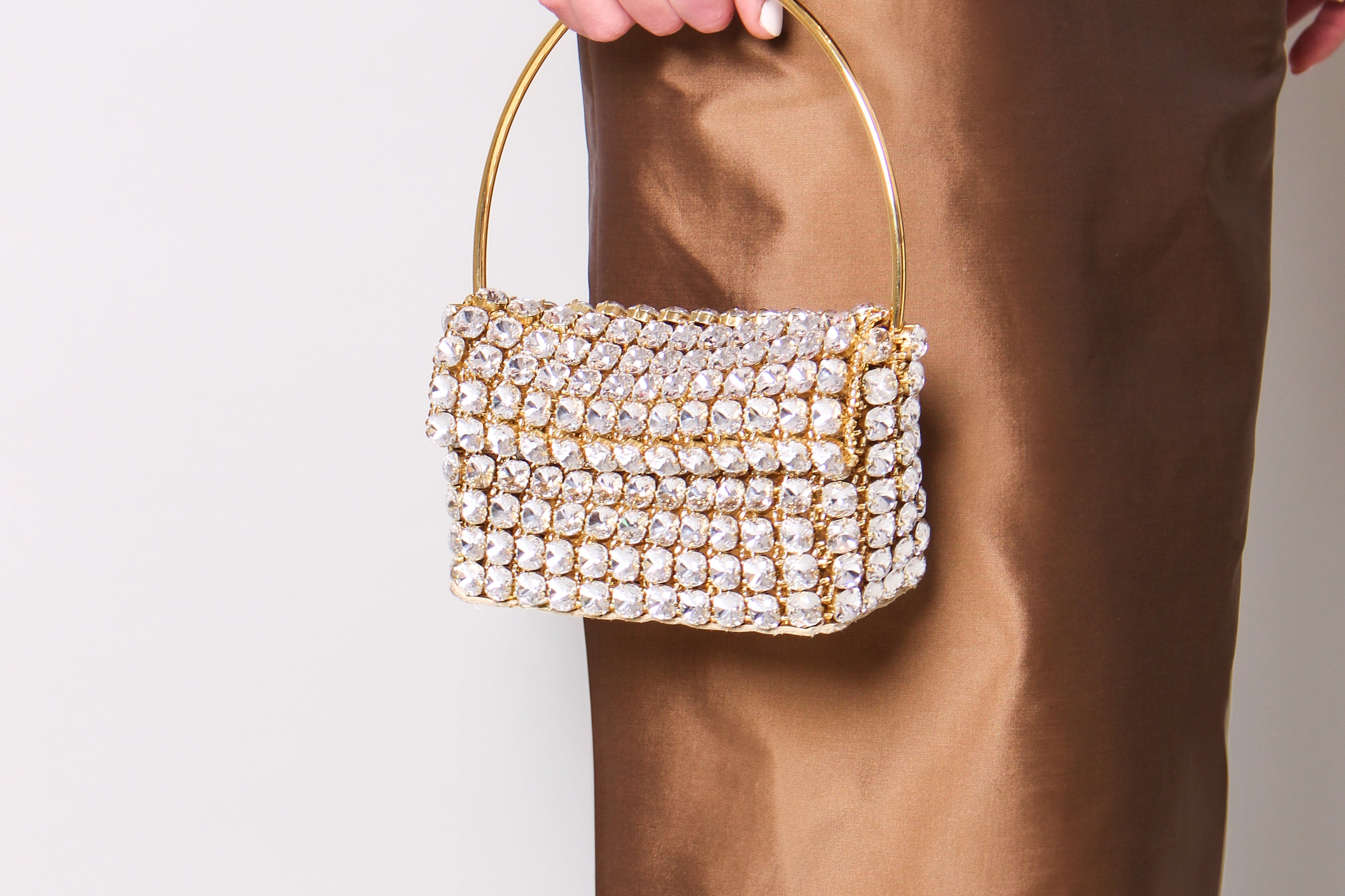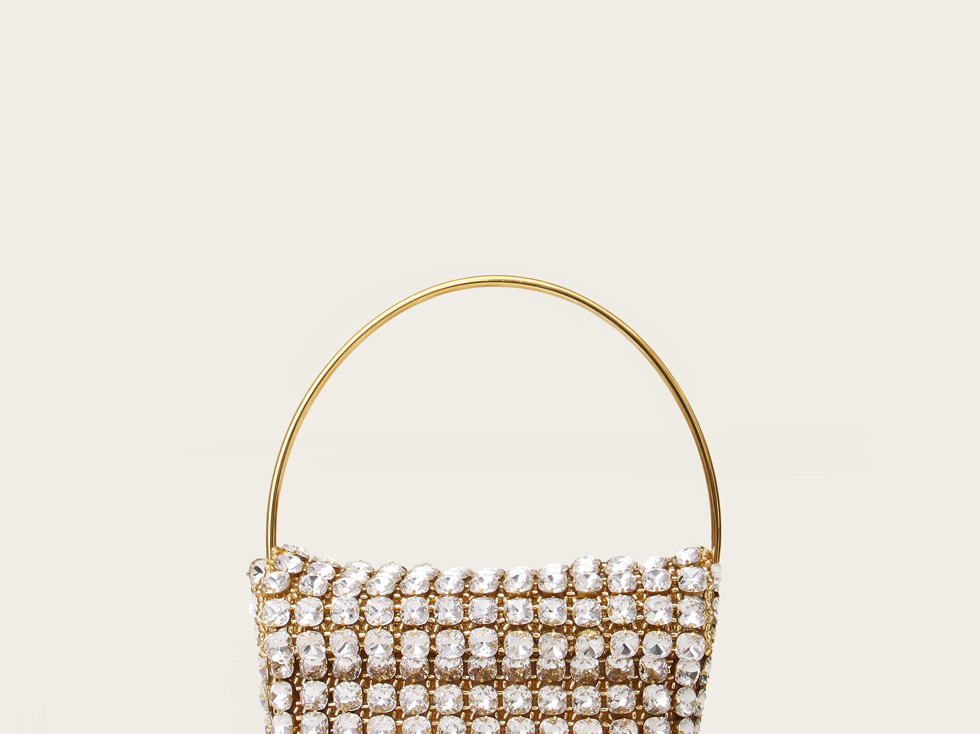 A dazzling piece entirely handcrafted from a mesh of crystals and small glass pearls. The mix of crystal and gold adds a glamorous touch, perfect for elevating any outfit with a refined sparkle.