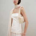 A classic baguette with a structured shape fully handcrafted with glossy beads, with Vanina's signature technique. This retro-mordern beauty will comfortably sit on your shoulder featuring a flap closure to store your essentials in style.