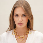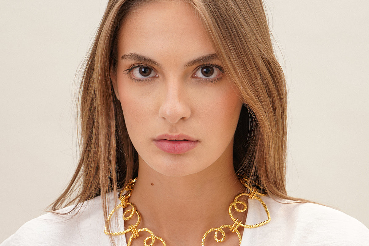 Our 'Metisse' chains love chokers are trending this season because of how effortlessly they elevate any outfit. It’s been made from 18 carats gold plated weaved brass.