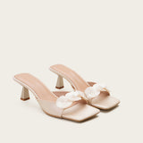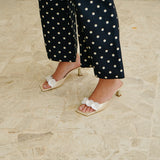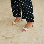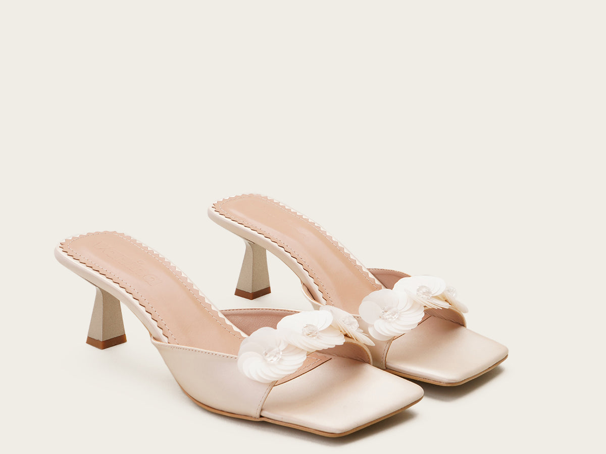 A layer of softness is added to your outfit with these eye-catching sandals. The 'fleurs de lune' sit comfortably on a low structured heel with dazzling floral embellishments on the front strap.