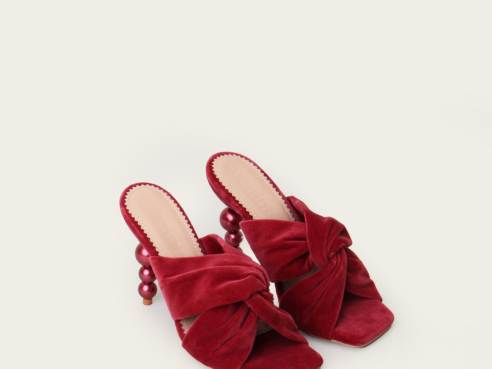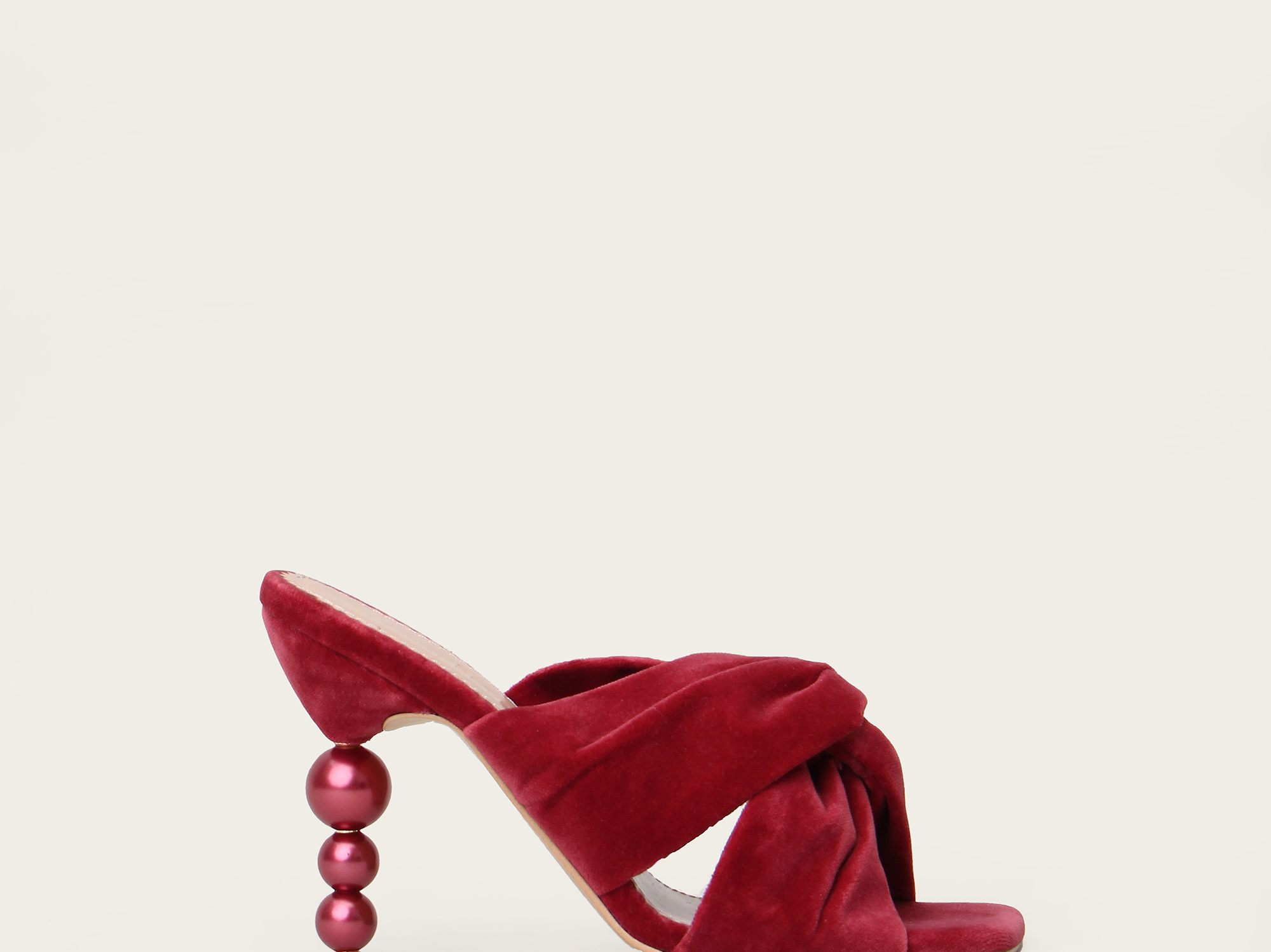 An elegant beaded heel with a cross detail at the front