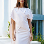 A one-size cape with a mock neck and two panels that can be tied in different ways. Crafted with a light crepe material, this flowing cape is an effortless piece that can be perfectly matched with the 'Vera' skirt.