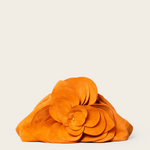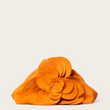 The 'Rendez-Vous' clutch, now comes in a soft Suede, artfully shaping an oversized handmade flower. Evoking a blooming rose, it brings a touch of romance and sophistication to your outings.