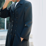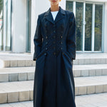An oversized and retro-modern coat that will elevate your day to night looks. The array of button detailing across the bust and the wide lapels add the perfect amount of polish.