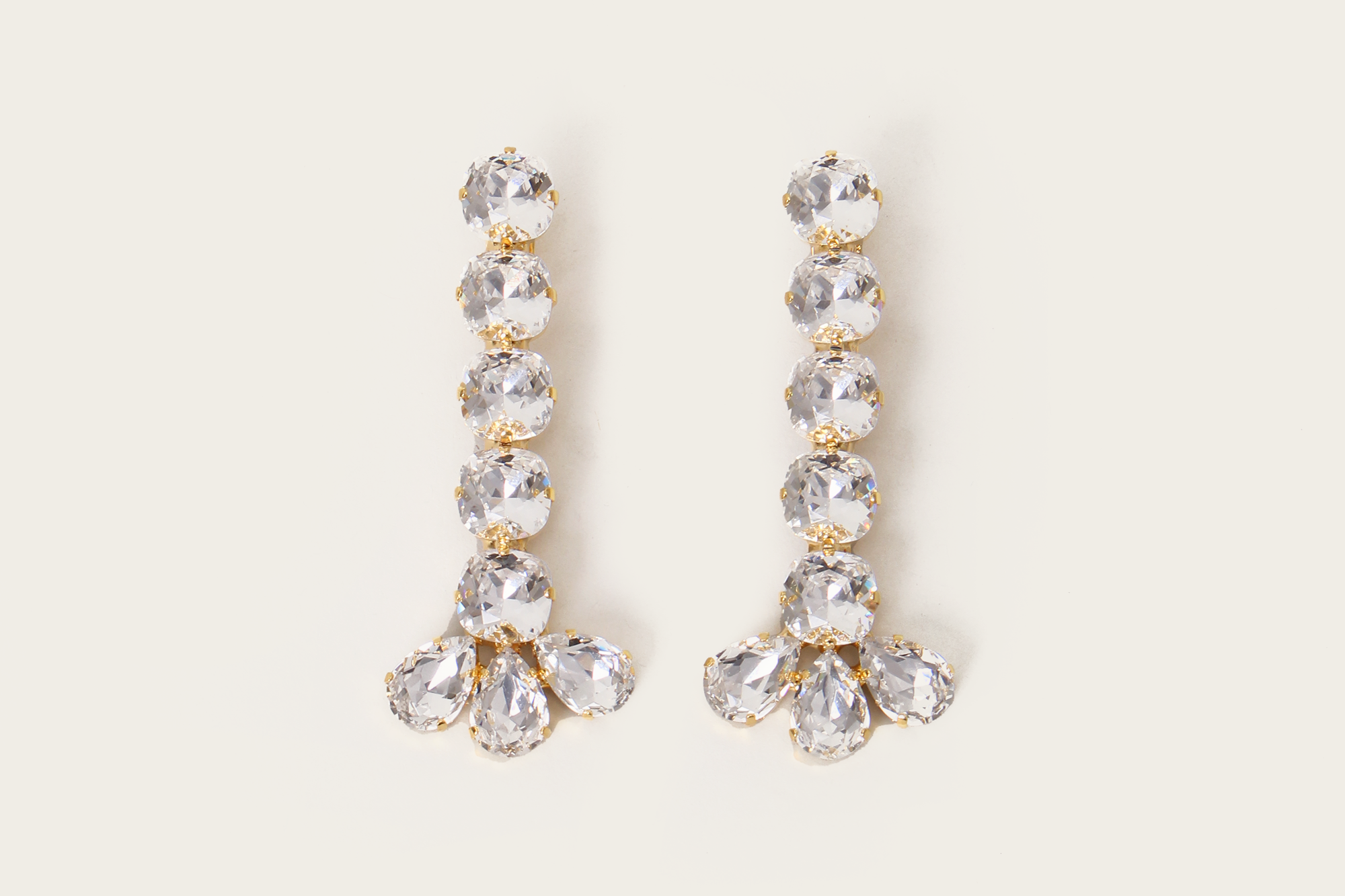 A vintage-inspired collection that reflects radiance and sophistication. The 'Diademes' clip-on earrings are crafted with dazzling geometric crystals, creating various statement shapes.