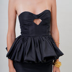 A bold and statement piece for the winter. It's a strapless silhouette with an angular ruffled hem and a cut-out under the bust. Style it with the matching 'Lula' skirt.