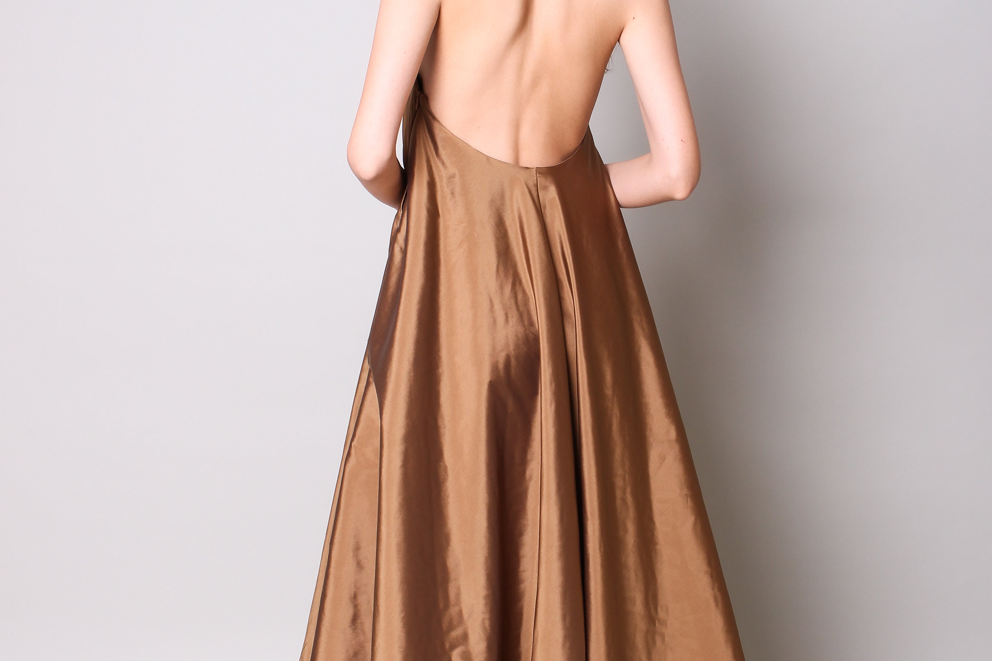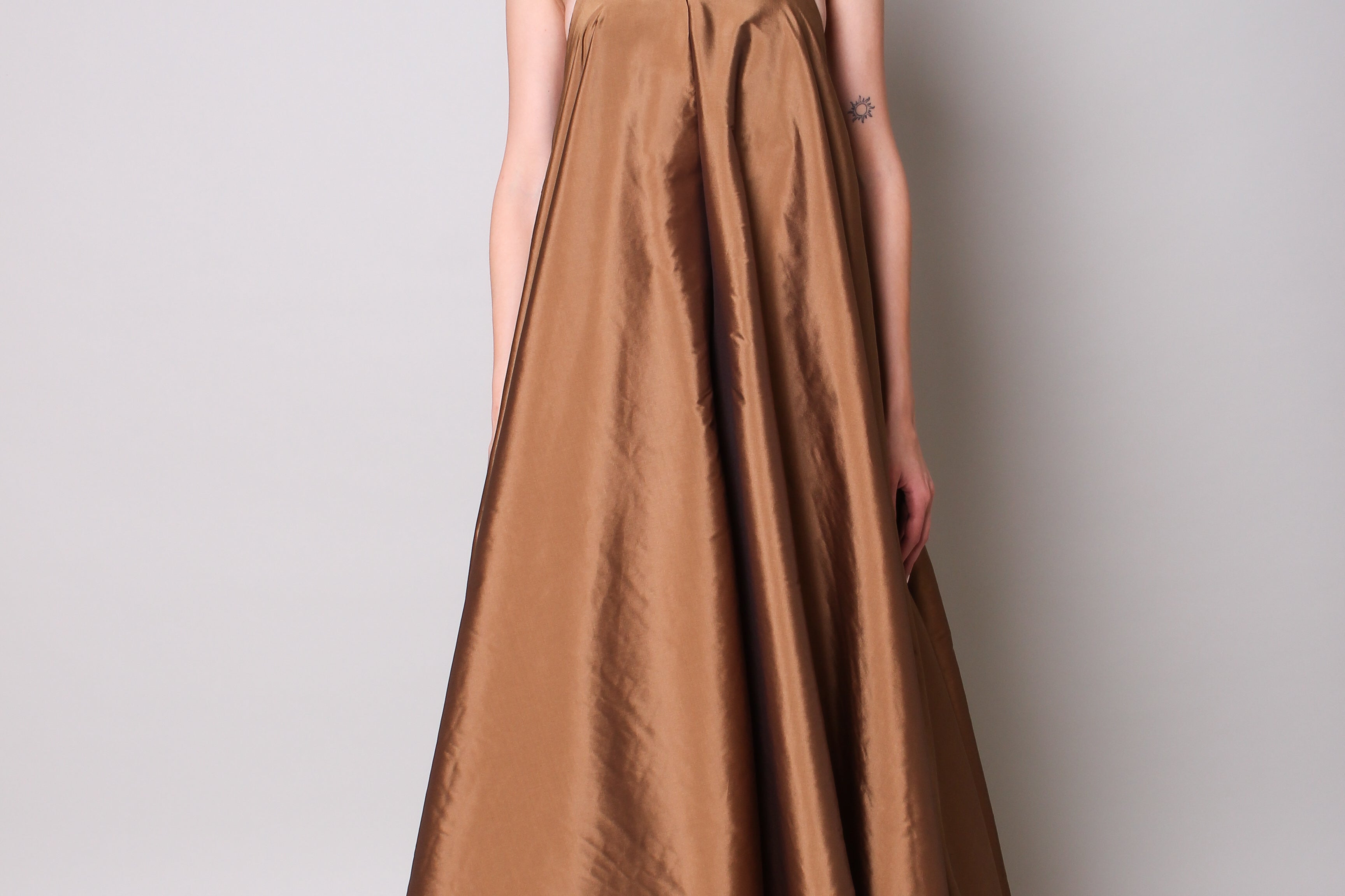 A timeless piece that can be easily worn from day to night. It features a squared neckline with a soft strap that wraps around the neck. It is highlighted by the ballooned- style pleats that elongate the silhouette.