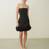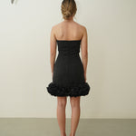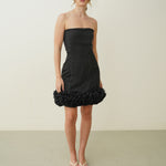 A fun and coquette piece that speaks for itself. Crafted with a light mousseline fabric, it's a mini strapless silhouette with layers of gathered ruffles at the hem.
