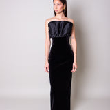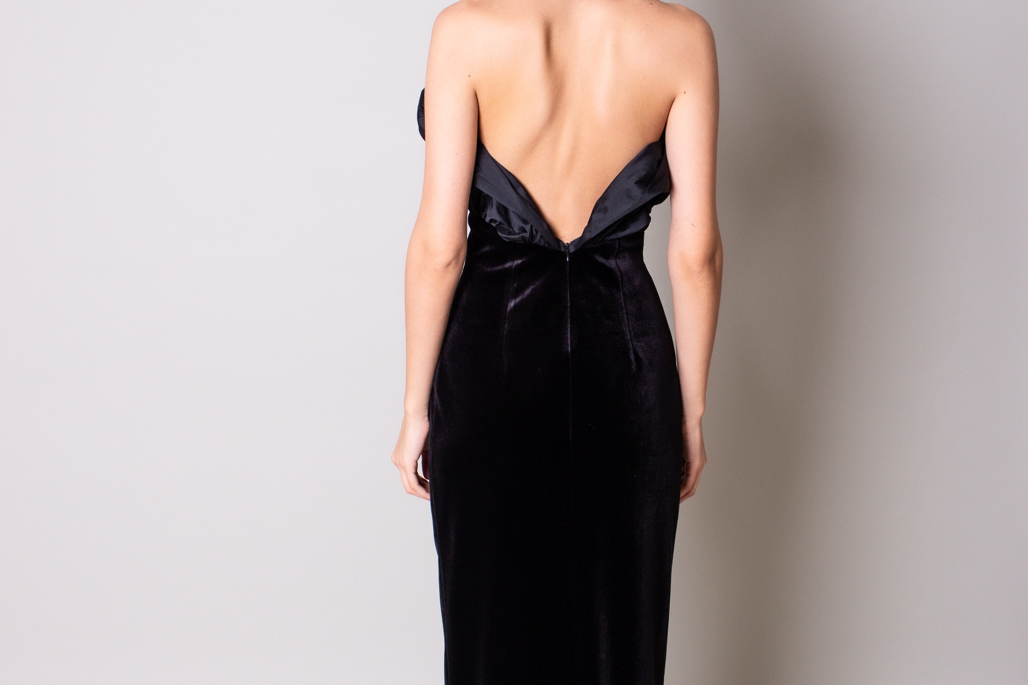 Inspired by the beautiful shapes of nautical creatures, our 'Shell' dress is this season's most elegant cut. With a pleated accordeon-like bust, it is completed with a straight silhouette.