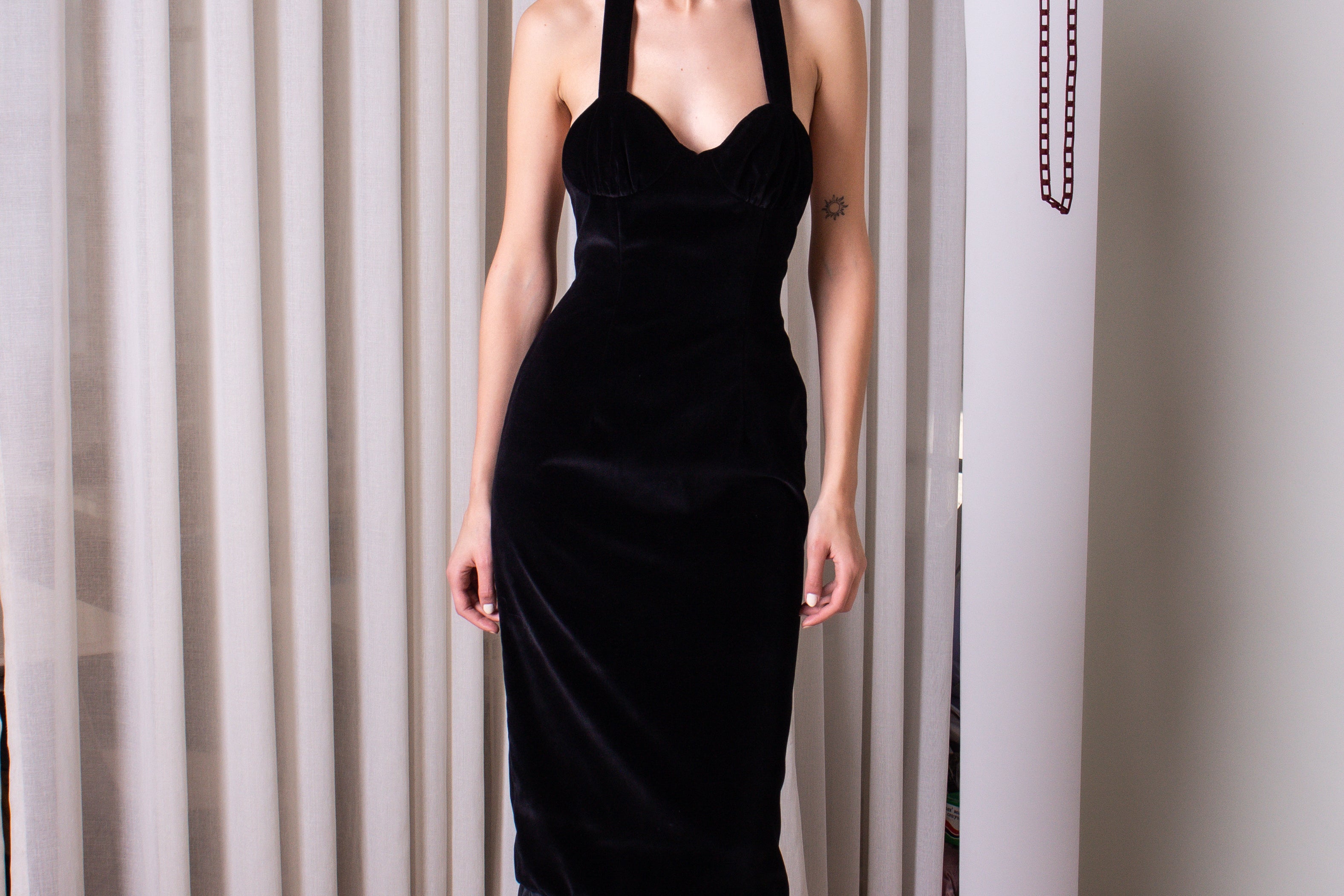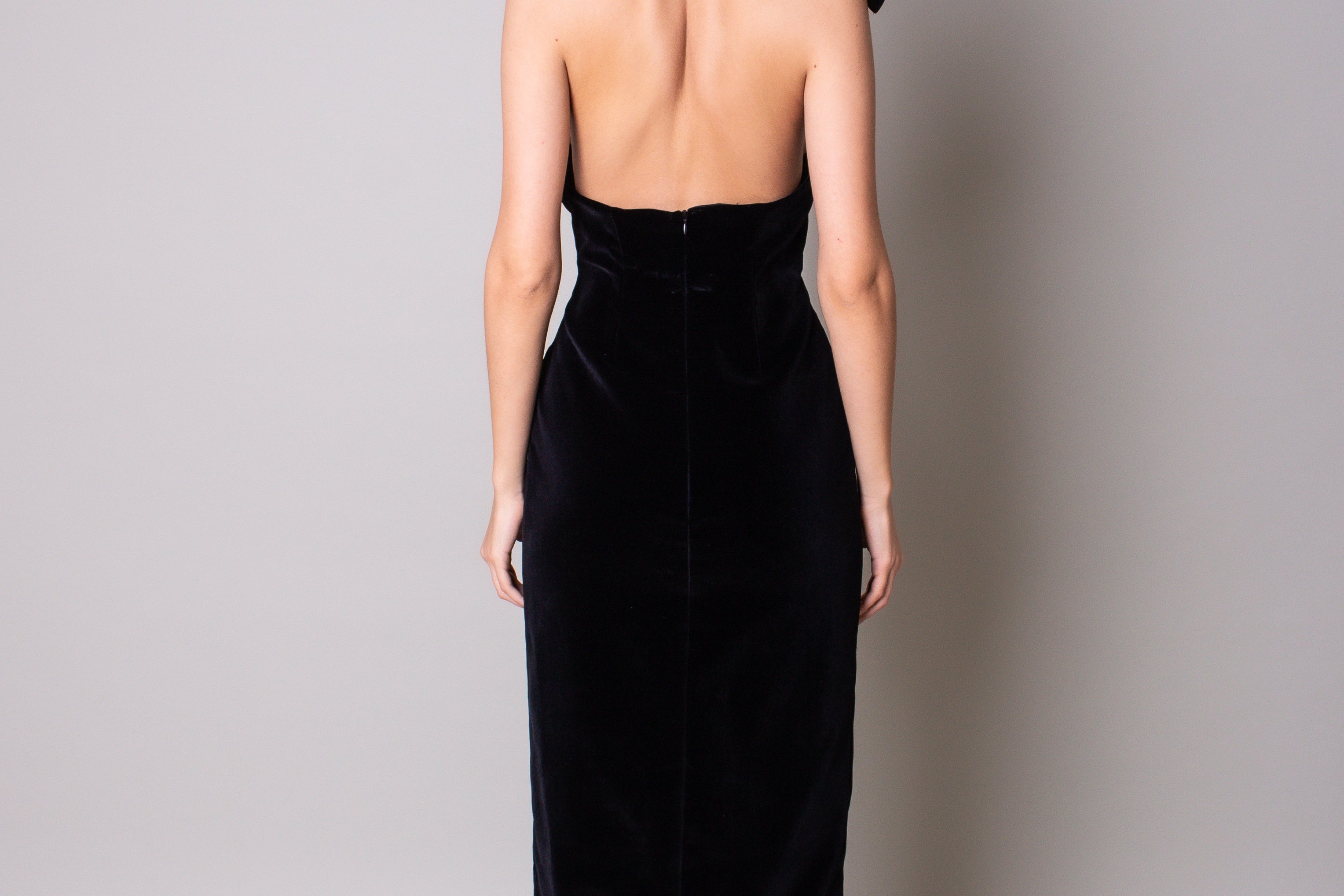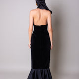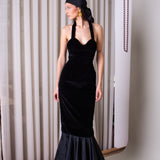 A mermaid-inspired piece that is both timeless and flattering. It features a sweetheart neckline with folding details at the bust, with a soft strap that wraps around the neck. It is completed with gathered pleats at the hem.