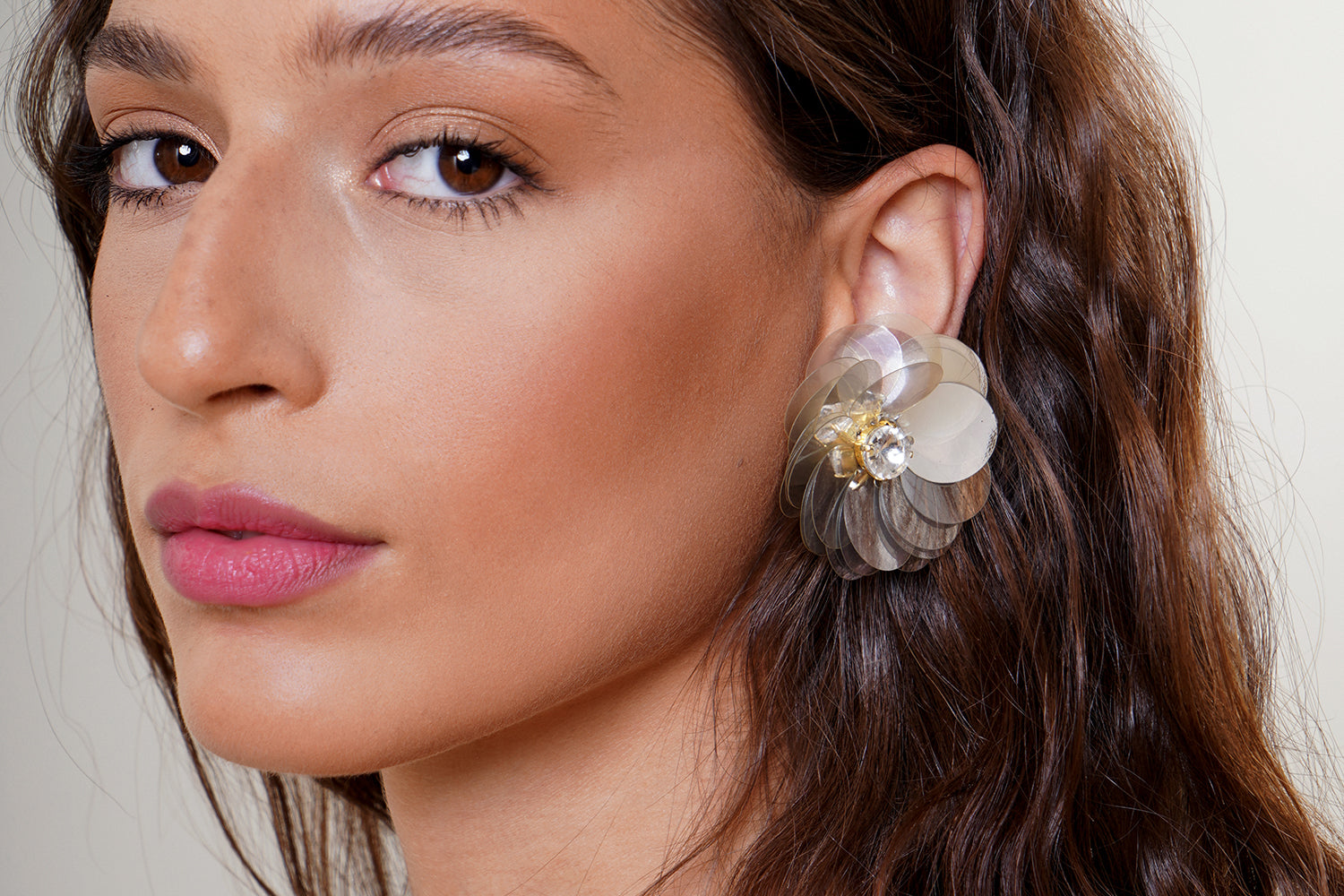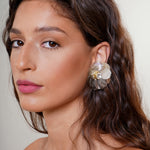 Our 'Eclats de Paquerette' piece has it all. A flower individually handcrafted with crystal beads and iridesecent sequins. The 'Eclats de Paquerette' are clip-on earrings.