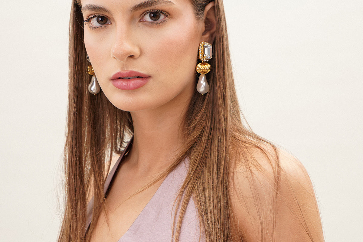 A timeless and modern piece that will accentuate your style. The 'fantaisie' earrings are multidimensional made with gold and pearly acrylic beads.