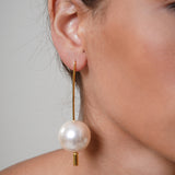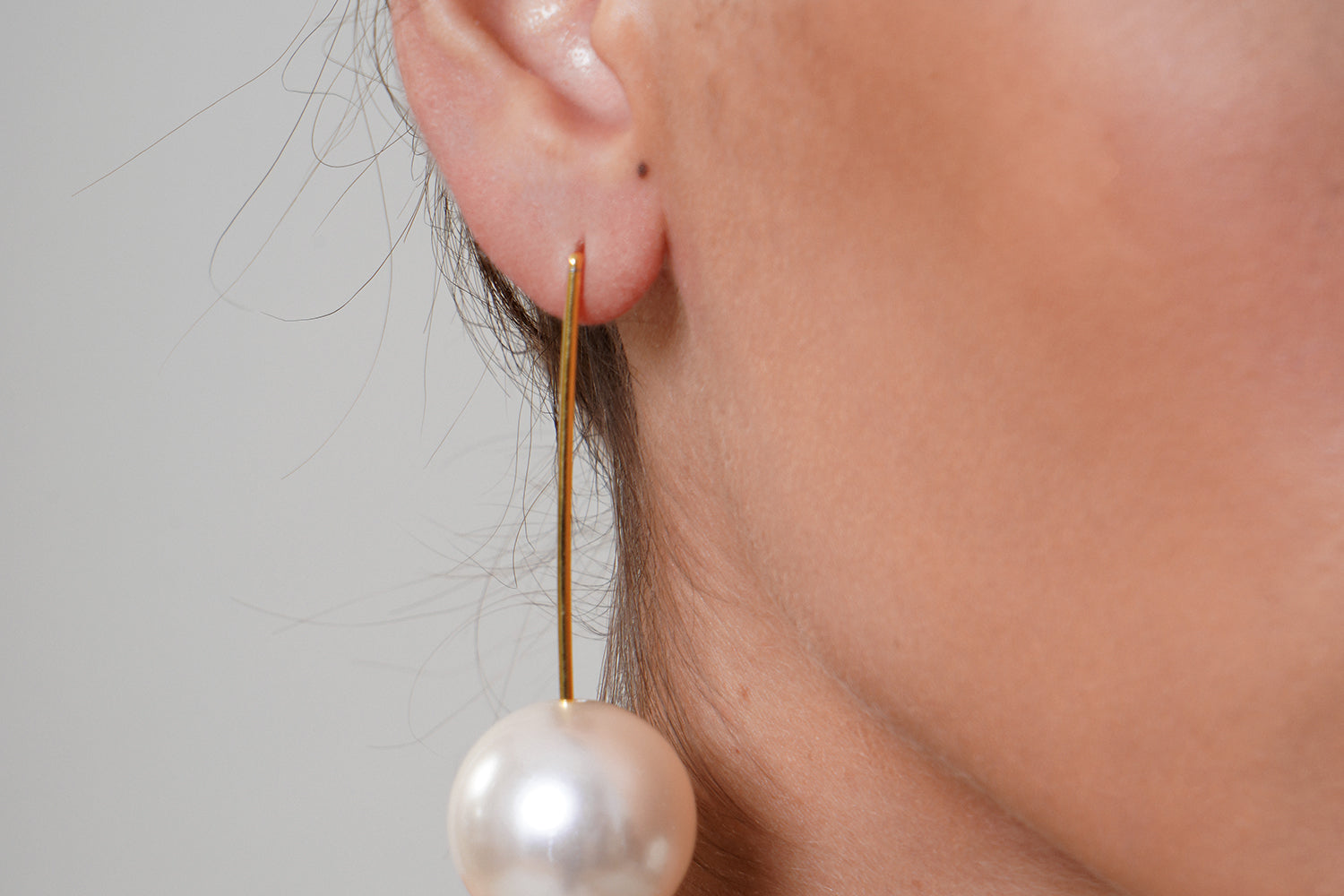 A simple and modern pair with flair. These pair of earrings are light and dangly, they are made with gold-plated brass stems that carry geometric acrylic beads.