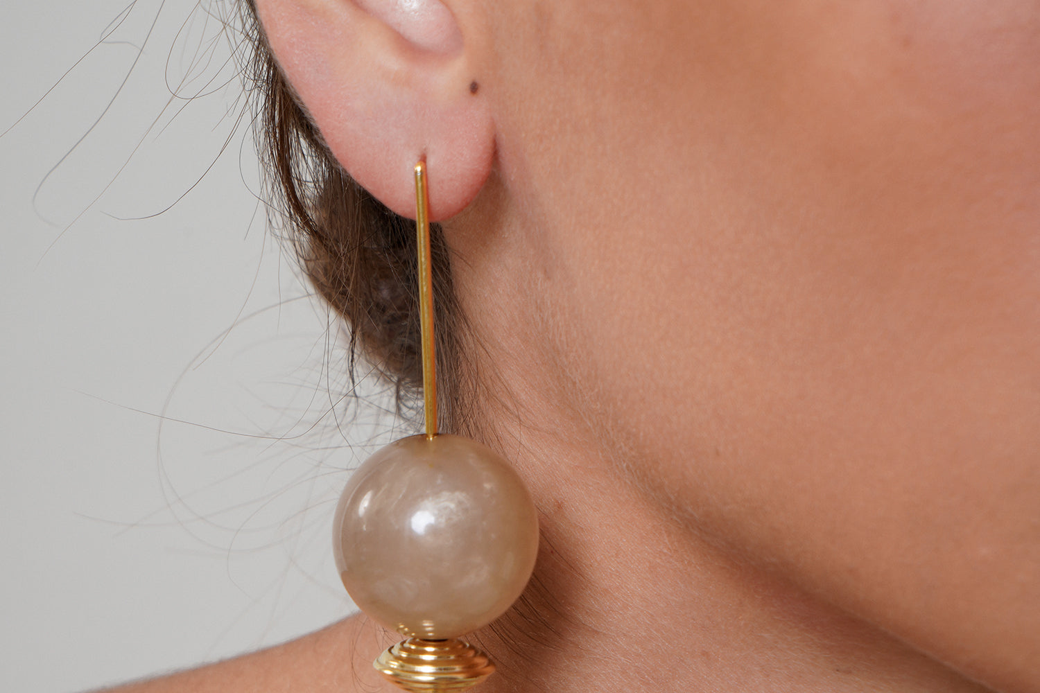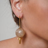 A simple and modern pair with flair. These pair of earrings are light and dangly, they are made with gold-plated brass stems that carry geometric acrylic beads.