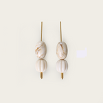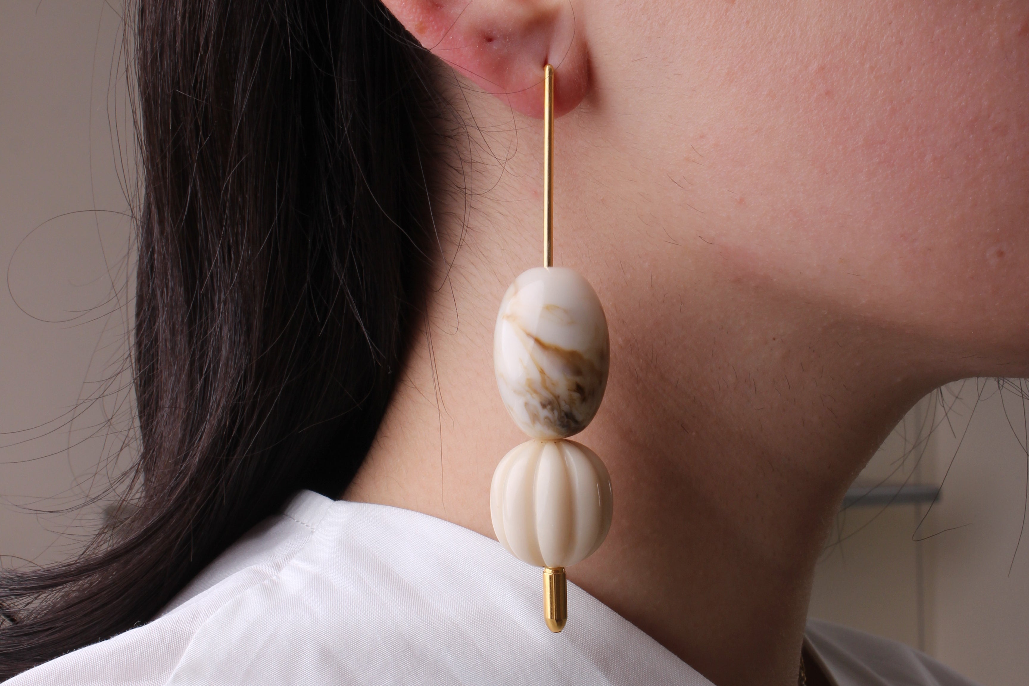 A simple and modern pair with flair. These pierced earrings are light and dangly, carrying geometric acrylic beads.