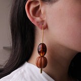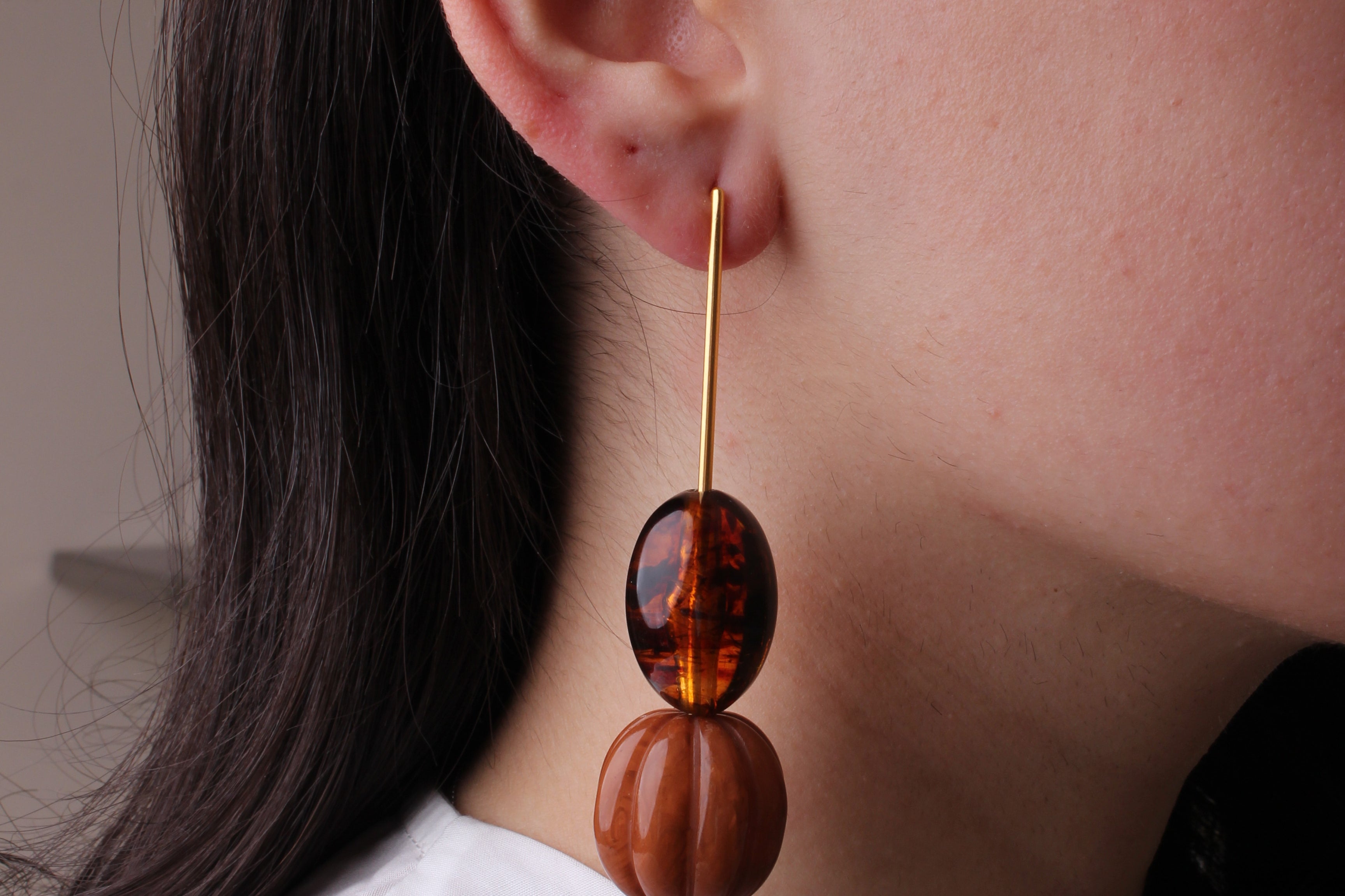 A simple and modern pair with flair. These pierced earrings are light and dangly, carrying geometric acrylic beads.