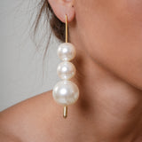 A simple and modern pair with flair. These pair of earrings are light and dangly, they are made with gold-plated brass stems that carry geometric acrylic beads.