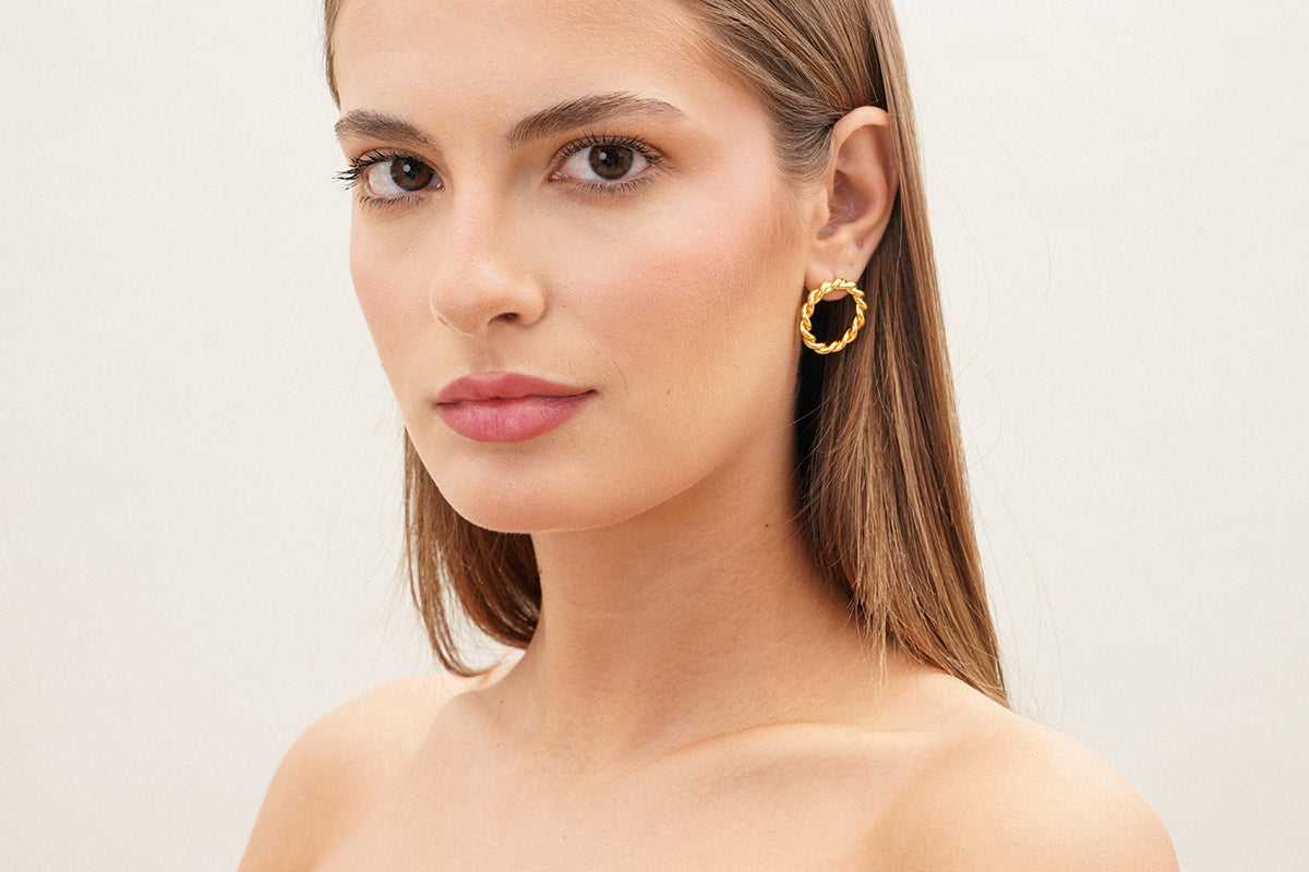 Our 'Metisse' circle earrings are handcrafted from 18 carats gold=plated weaved brass.