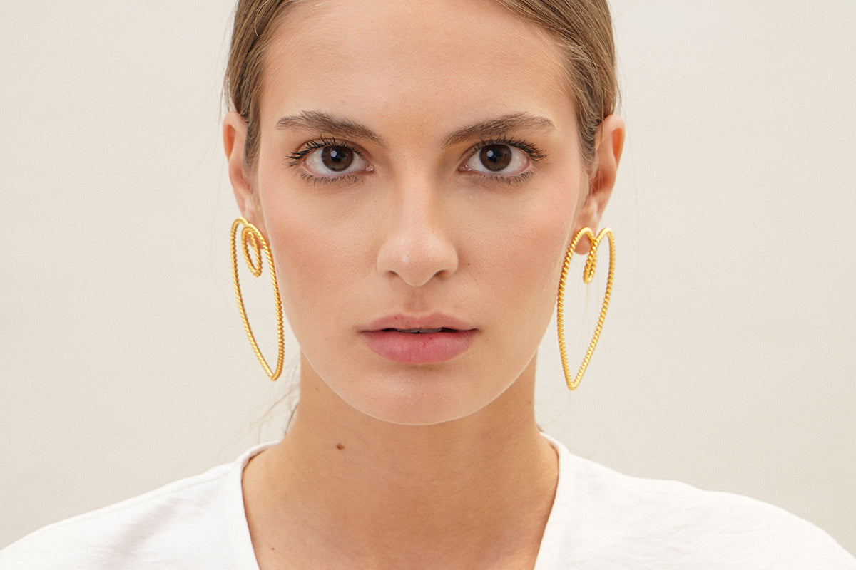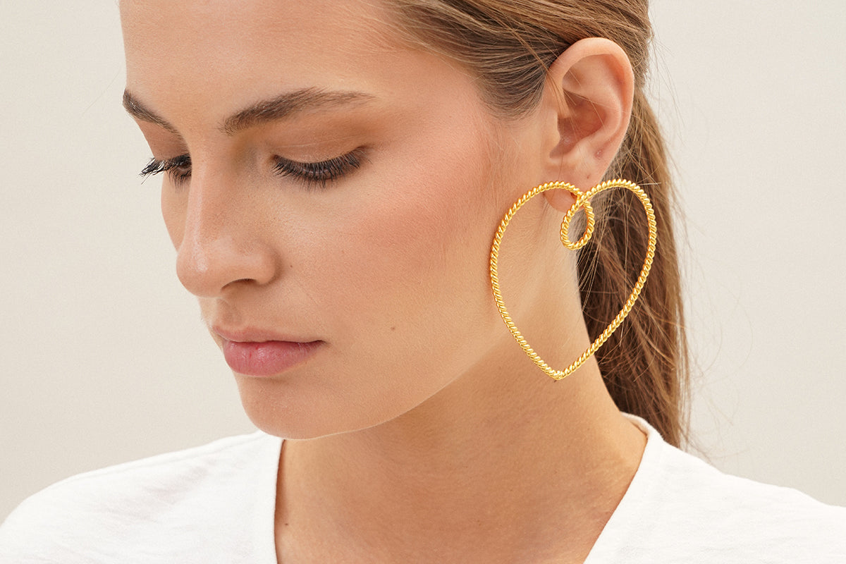 Our 'Metisse' heart earrings are handcrafted from 18 carats gold-plated weaved brass.