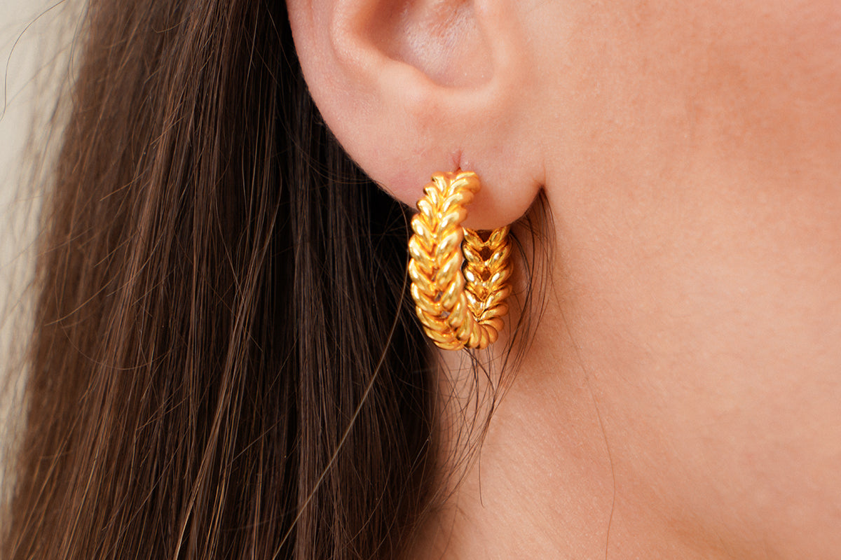 Our 'Metisse' hoops earrings are handcrafted from 18 carats gold-plated weaved brass.