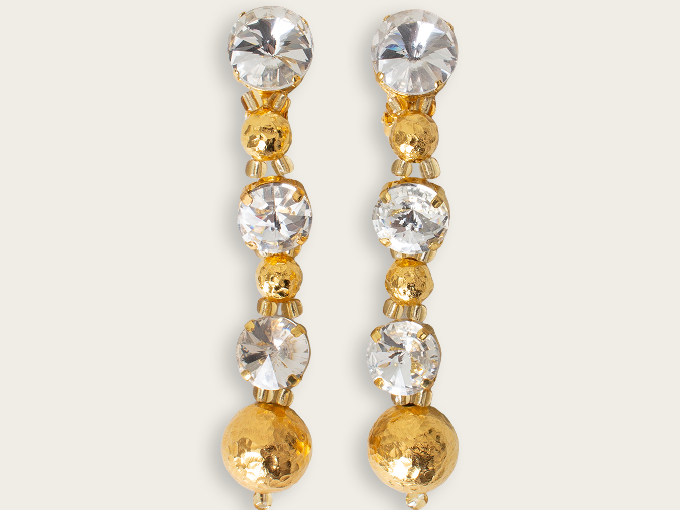 We recommend avoiding perfume and water on all jewels, particularly our gold-plated ones.