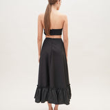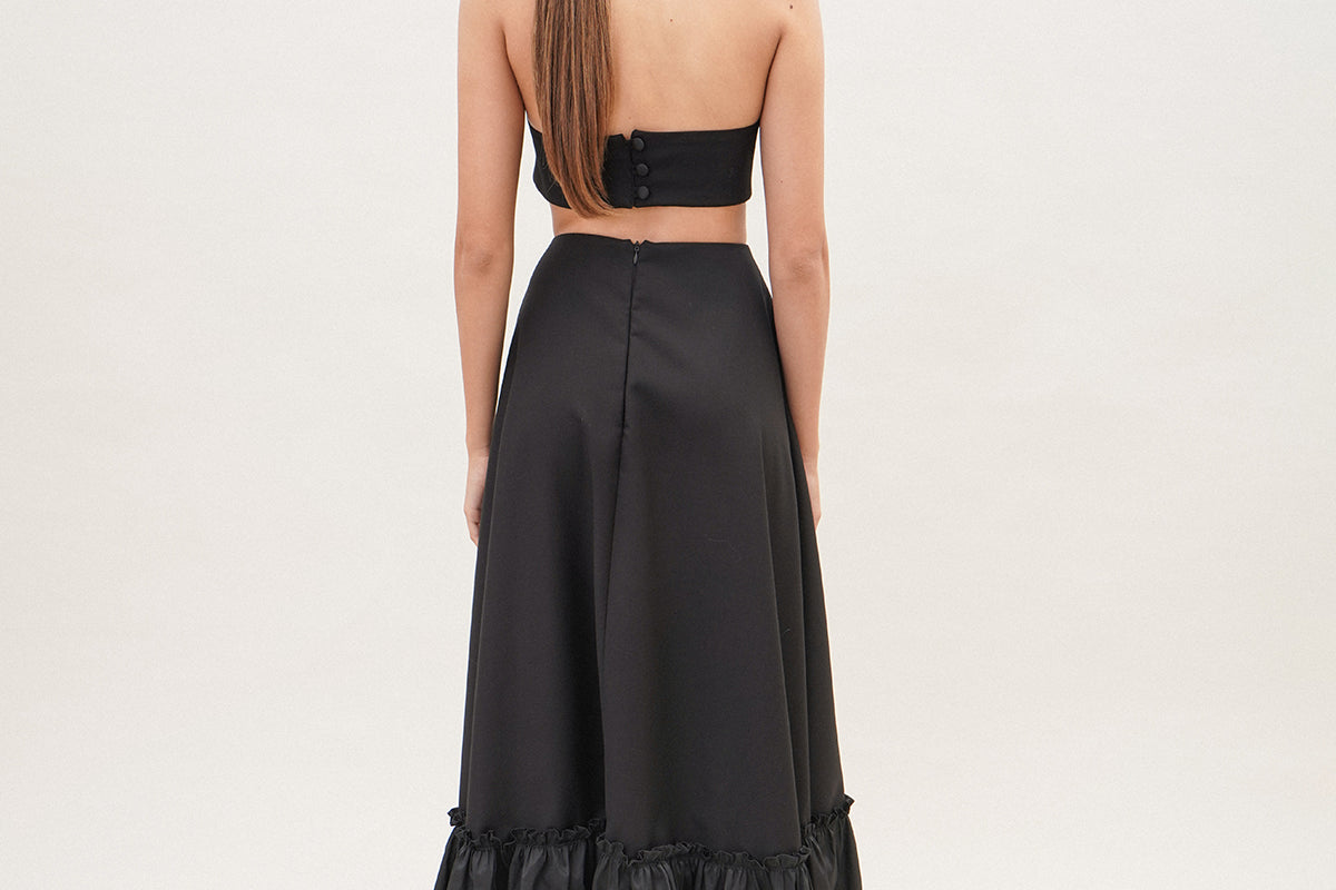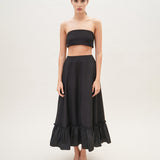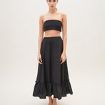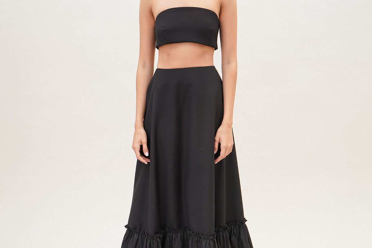 A full A-line skirt with a ruffled hem. Wear it this summer with the matching bandeau top for an enchanting look.