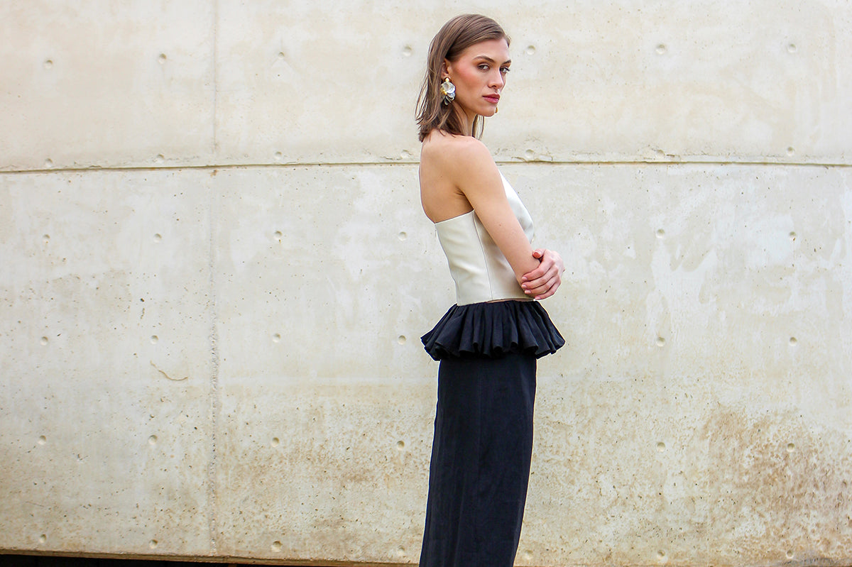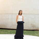 The perfect staple that will take you from day-to-night events. The 'Eclat de Lune' skirt features multidimensional ruffles at the hips and the hem, that move as you walk.