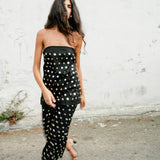 A strapless bustier cut from a light cotton linen, and elevated with hand-embroidered sequin appliques. They are sown on the front and the back of the top, creating a sparkling haze. Pair it nicely with the matching 'Ecorces de Cerisier' skirt.