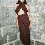 Designed in a soft linen that gathers on one side to create an asymmetric drape. This skirt is designed to be an everyday favorite. It can easily be dressed up or down.