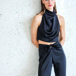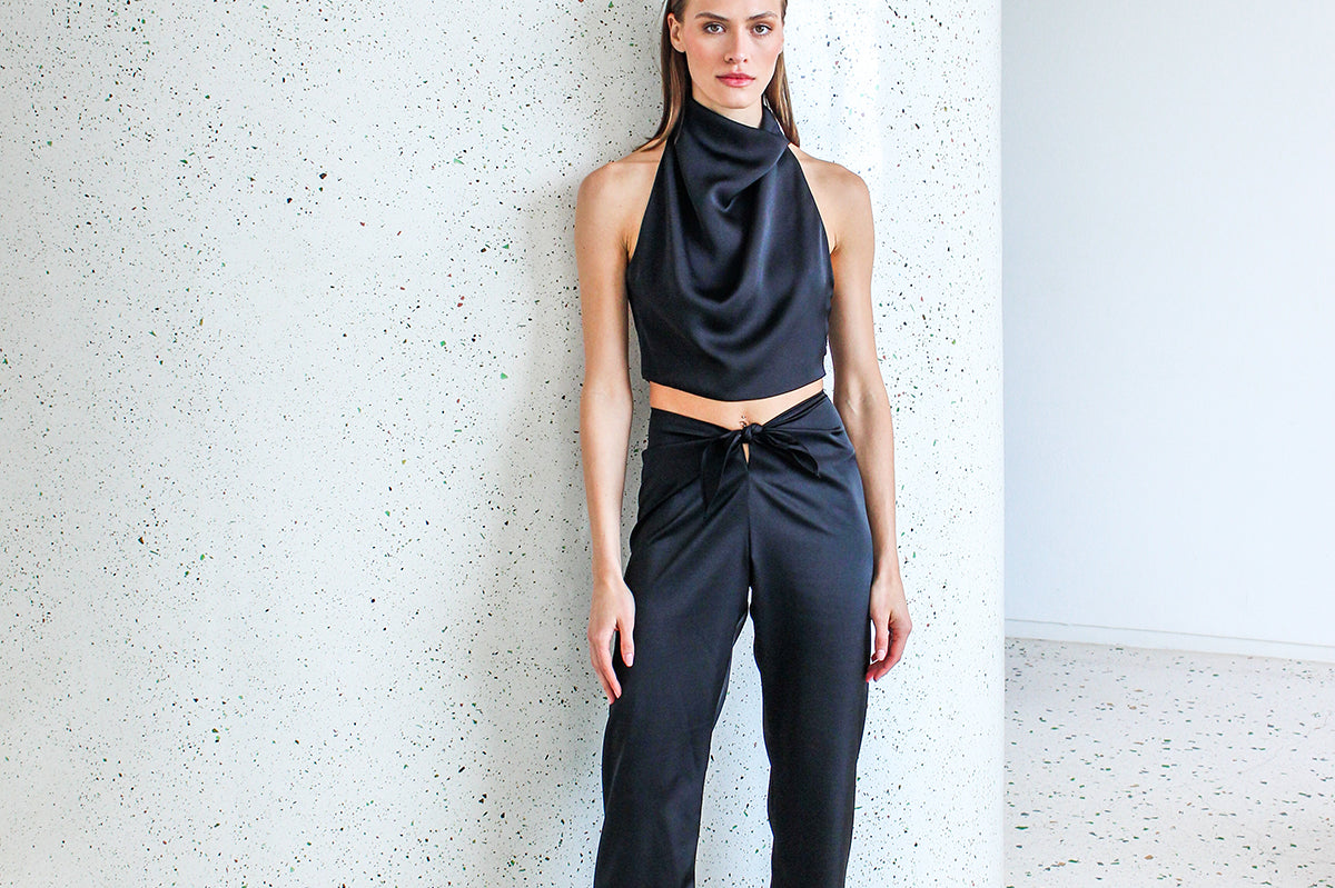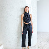 An effortless silhouette for your summer nights. The 'Esmeralda' pants feature an adjustable bow tie at the waist and have tapered legs for a flaterring silhouette.