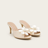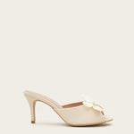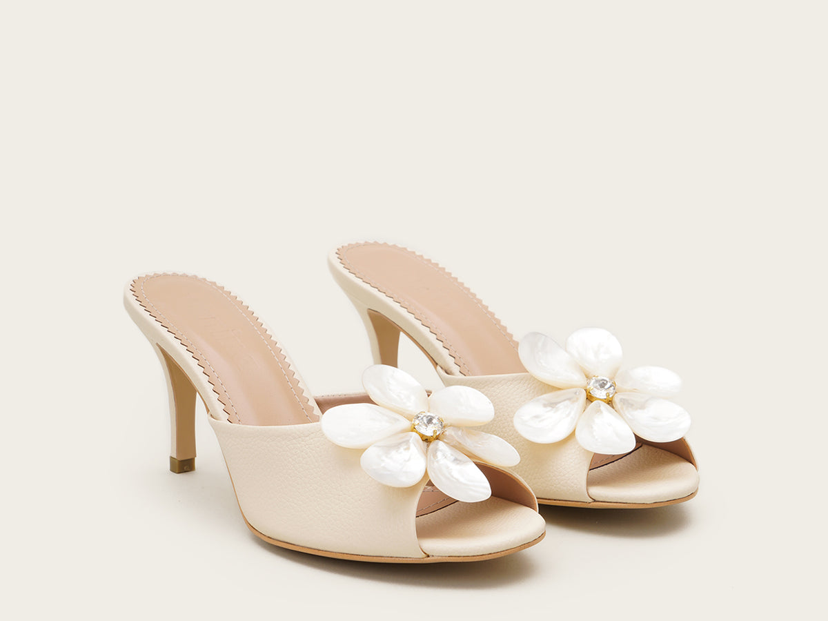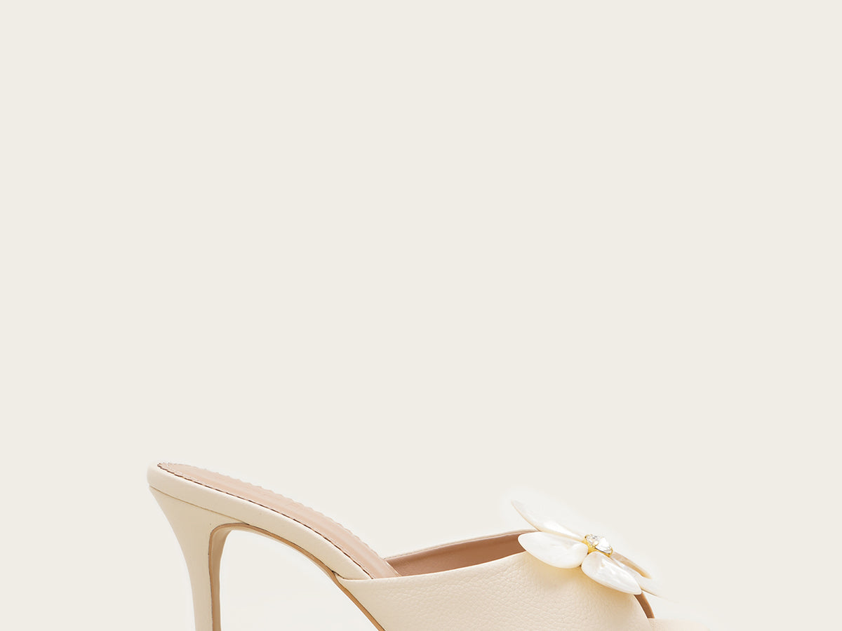 A step feels like a dream when wearing the “Fleur Blanches Mules”. With its fairy like flower at the center and its kitten heal, these mules will make you feel chic and elegant while still going simple.