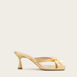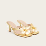 A step feels like a dream when wearing the 'Fleur Blanches Sandals'. With its fairy like flower at the center and its kitten heal, these mules will make you feel chic and elegant while still going simple.