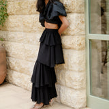 A mid-waist piece fully crafted from an airy voile material, with tiered layers that elegantly move with you.