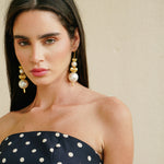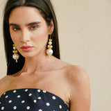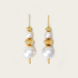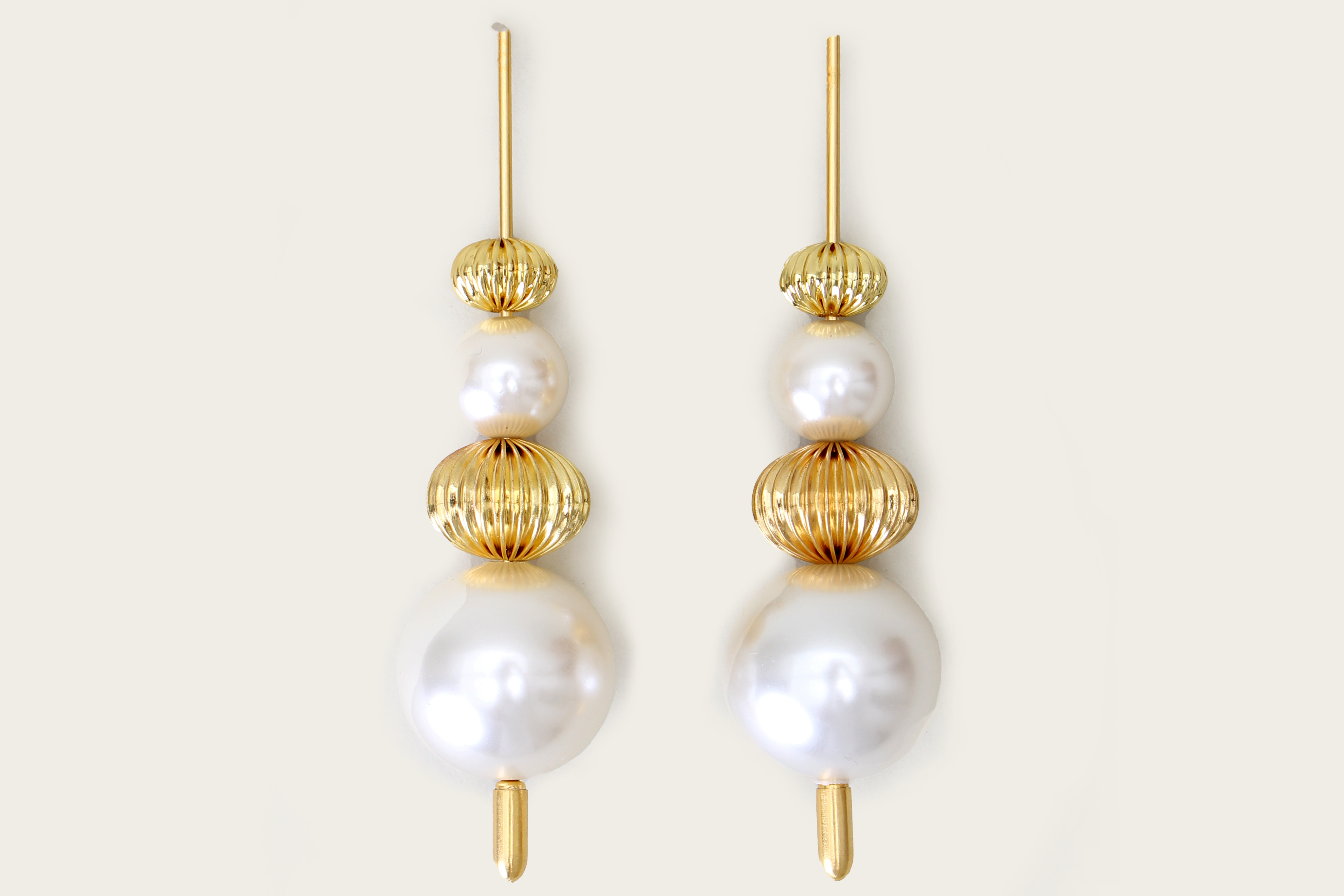 A simple and modern pair with flair. These pair of earrings are light and dangly, they are made with gold-plated brass stems that carry geometric acrylic beads.