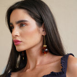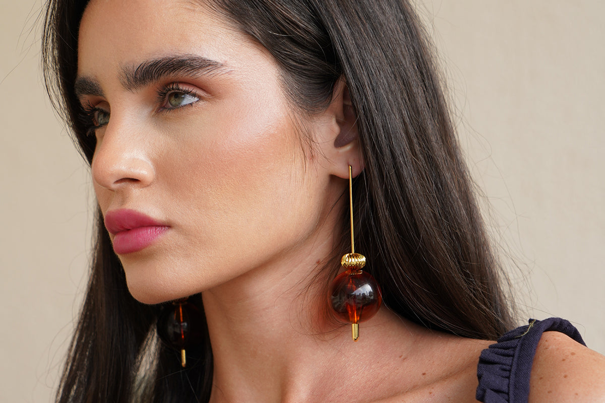 A simple and modern pair with flair. These pair of earrings are light and dangly, they are made with gold-plated brass stems that carry geometric acrylic beads.