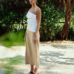 A versatile day-to-night top with an effortless feel. It's a size free piece with an asymmetrical silhouette and an open back.