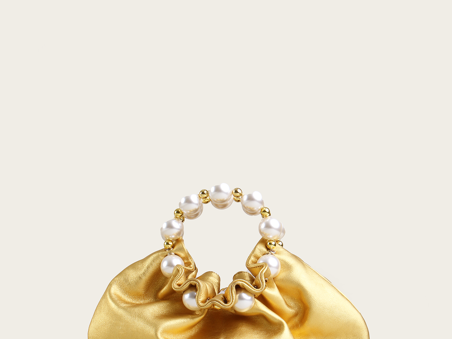 A Vanina classic revived from the archives. Our 'Julie' bag features a beaded circular handle with a moon-shaped base