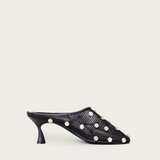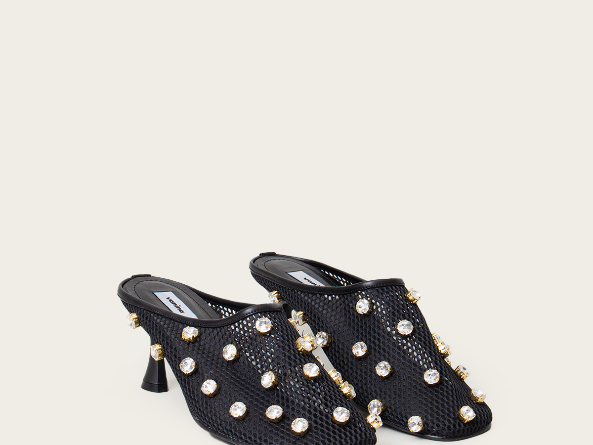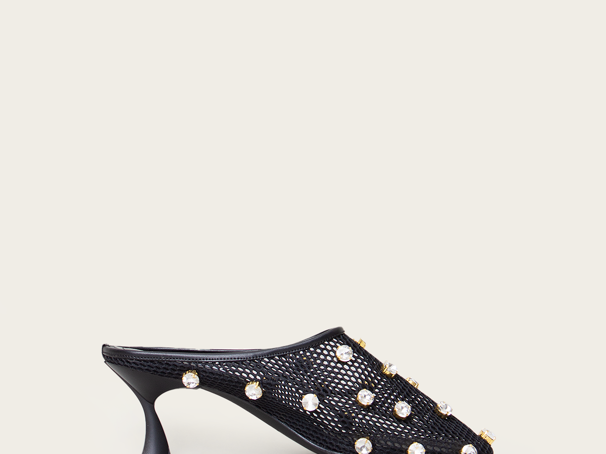 These closed fishnet mules will be your go-to this summer. Crafted from breathable mesh and set on a 7cm heel, they are adorned with contrasting white crystals for added edge.