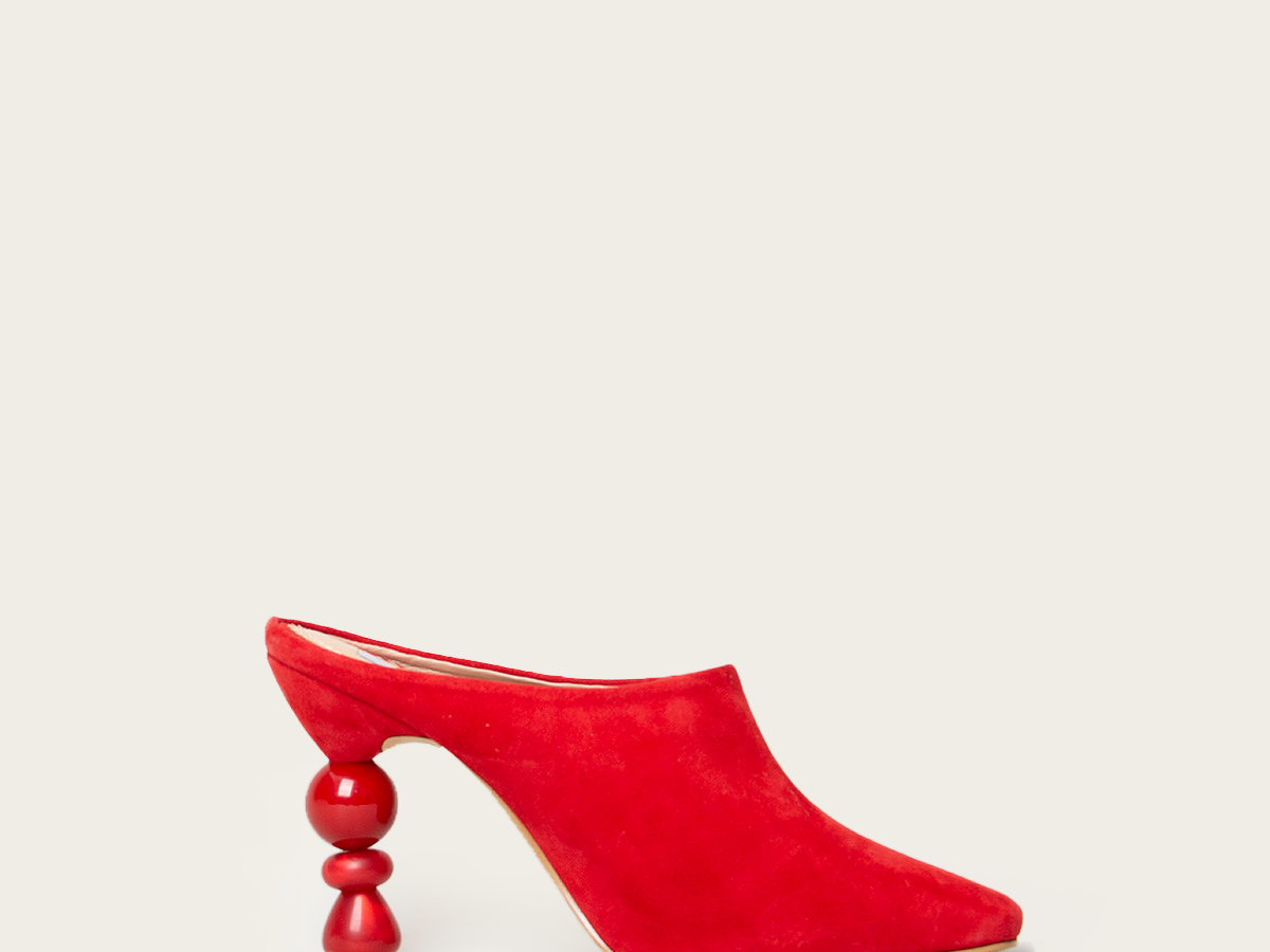 Crafted with a soft suede, these embellished mules scream elegance. They feature a pointed toe and a 10cm embellished with resin geometric beads.