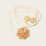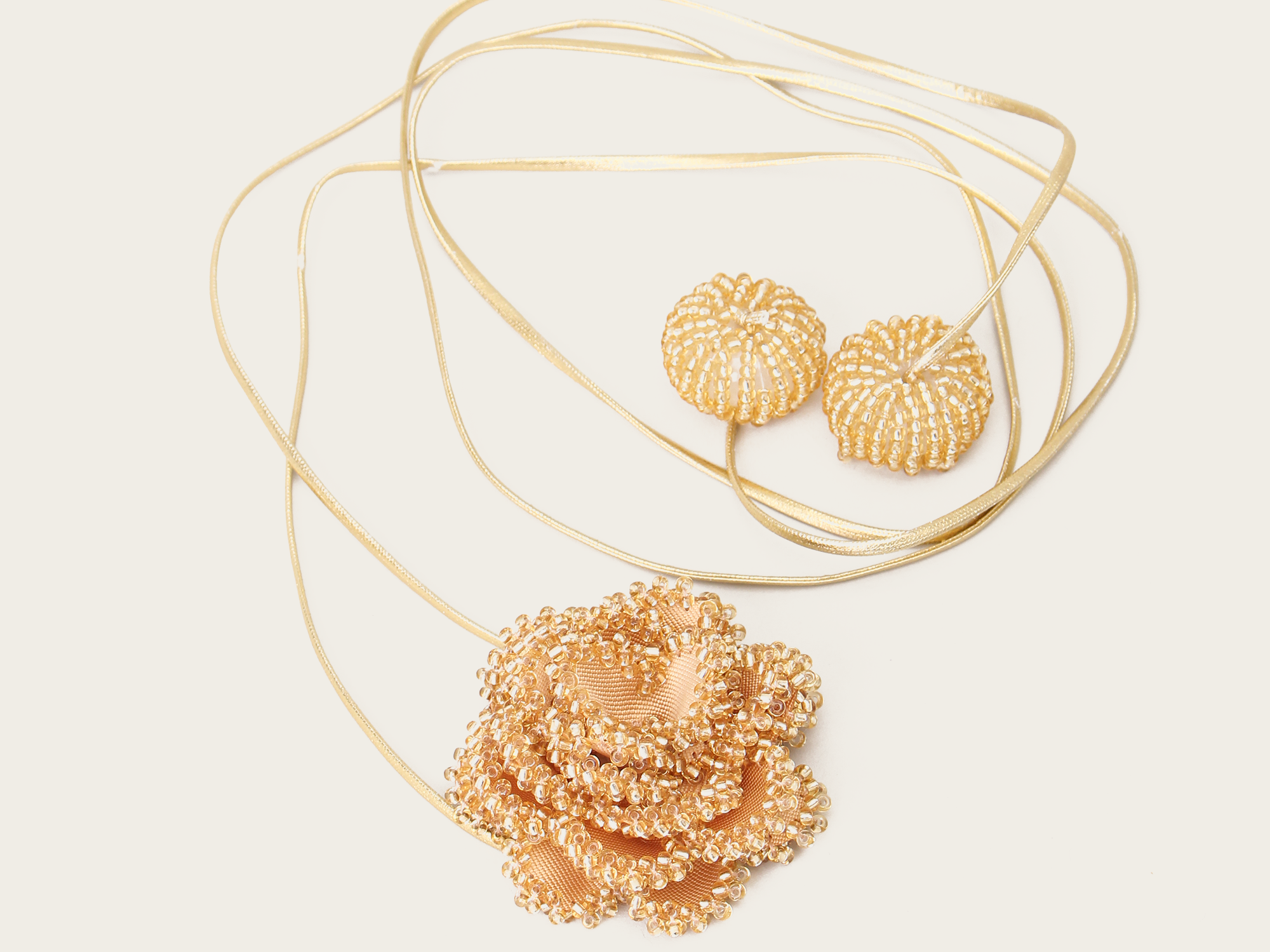 Inspired by the glamour of blooming petals, this choker is handcrafted with laser-cut gathered petals. They are intricately embellished with acrylic beads, offering a touch of whimsy and romance to any outfit.