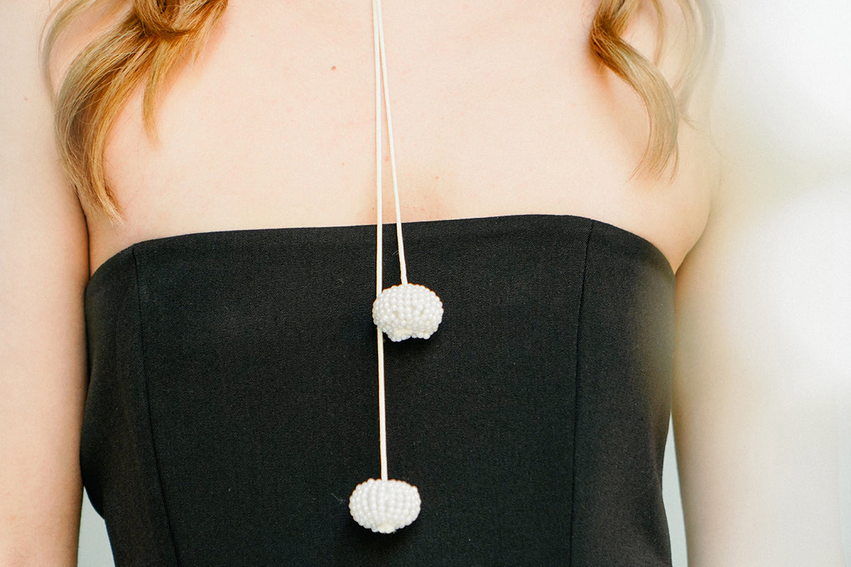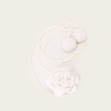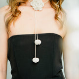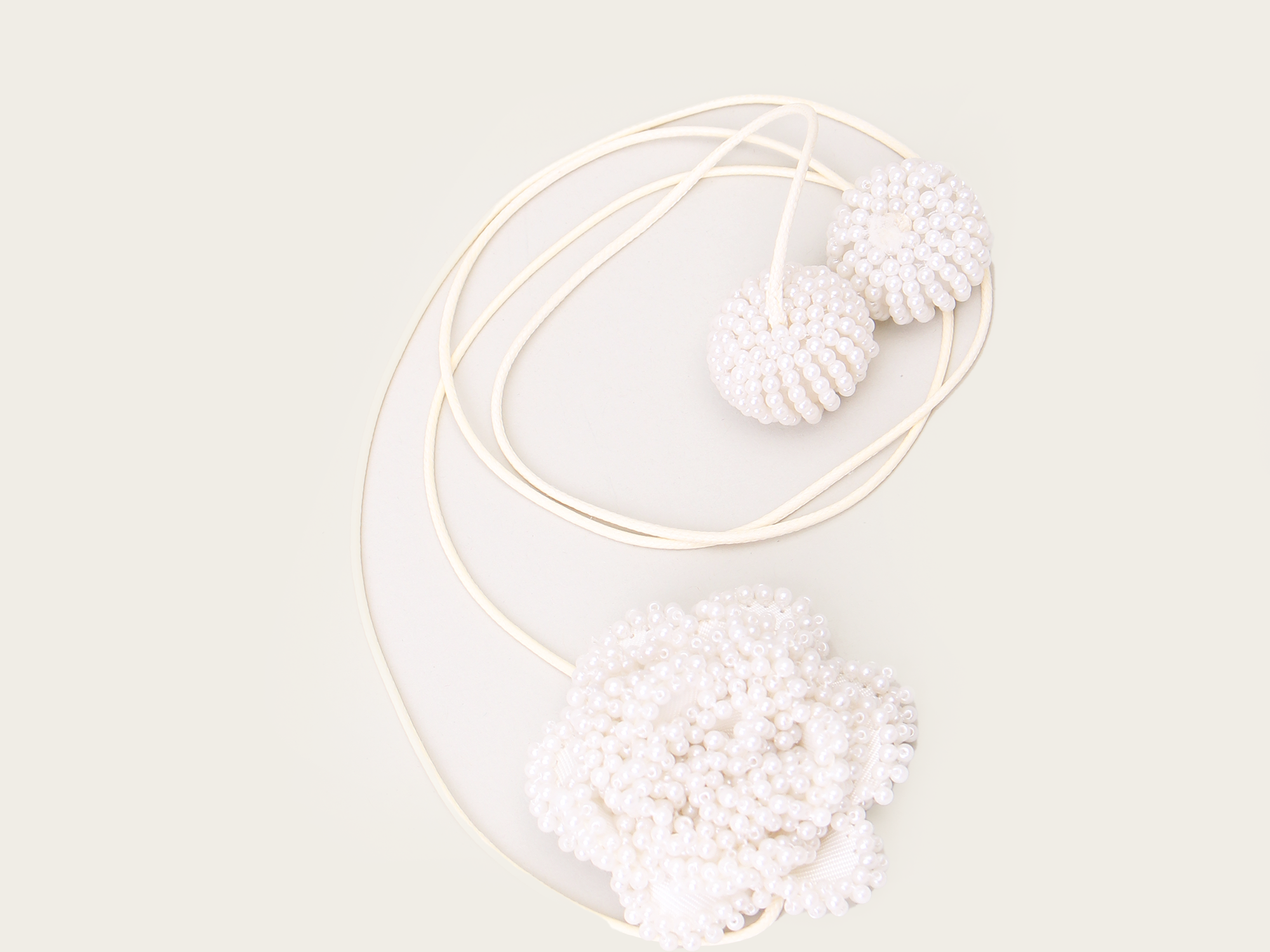 Inspired by the glamour of blooming petals, this choker is handcrafted with laser-cut gathered petals. They are intricately embellished with acrylic beads, offering a touch of whimsy and romance to any outfit.