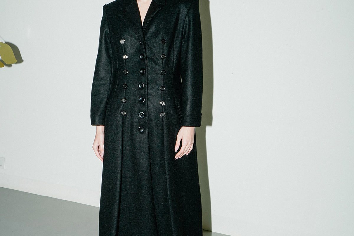 An oversized and retro-modern coat that will elevate your day to night looks. The array of buttons detailing across the bust and the wide lapels add the perfect amount of polish.
