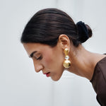 This clip-on piece is a gold-plated tear drop shape with a foil finish.