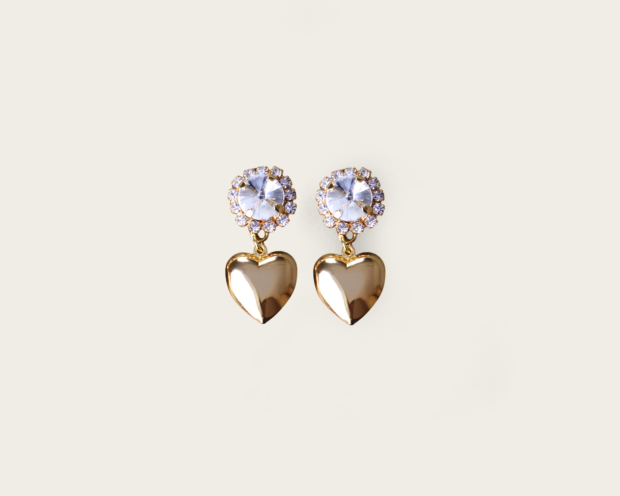 Statement pierced earrings with dazzling crystals and a small gold heart.